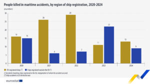 Según informa Eurostat, entre 2020 y 2024, en promedio, murieron 19 personas al año en todo el mundo en accidentes marítimos que involucraron buques registrados en la UE.