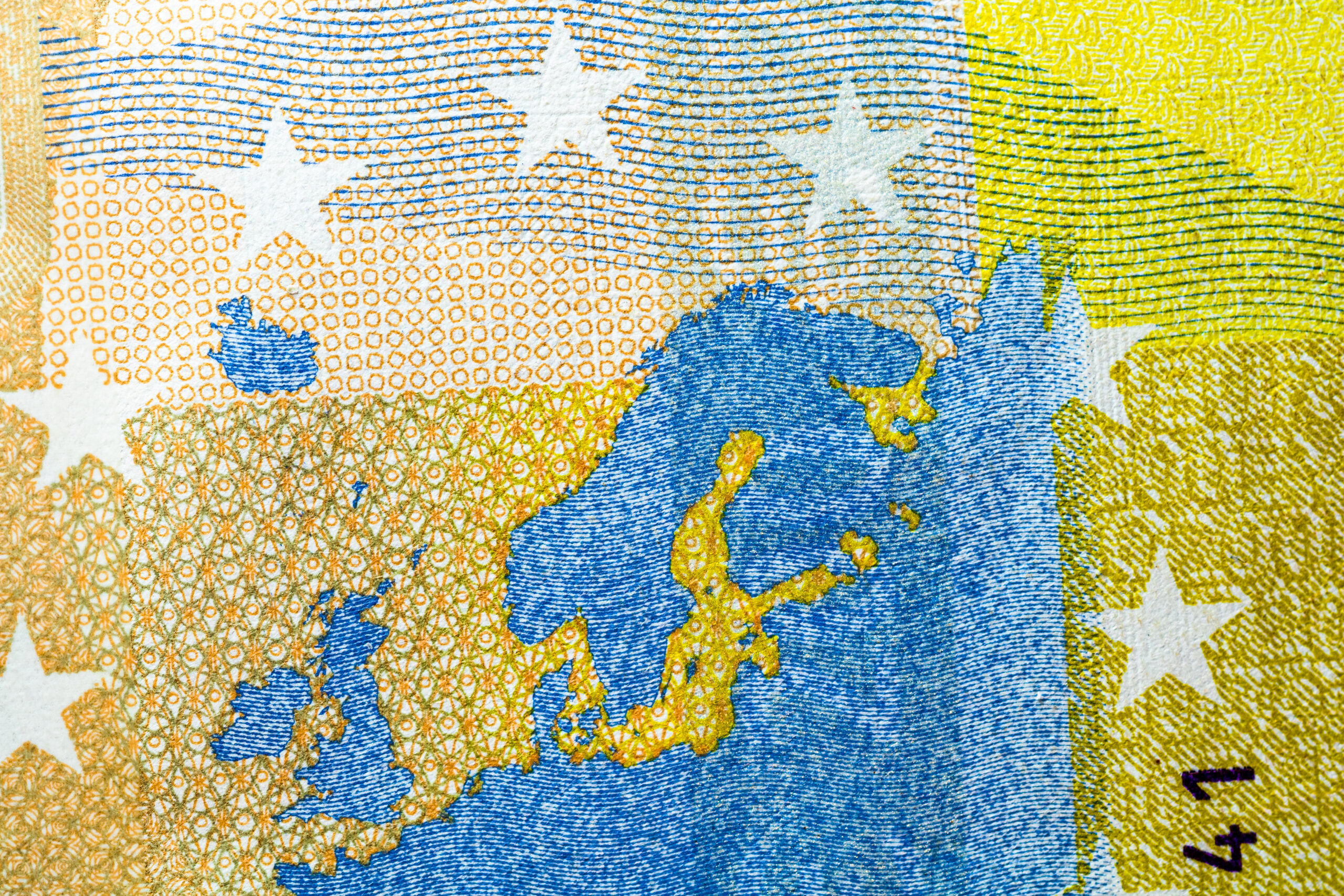 A closeup of EURO banknote details - world money, inflation and economy concept