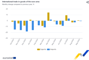 Las primeras estimaciones del saldo de la zona del euro mostraron un superávit de 12.500 millones de euros en el comercio de bienes con el resto del mundo en septiembre de 2024, en comparación con los más de 9.800 millones de euros de septiembre de 2023.