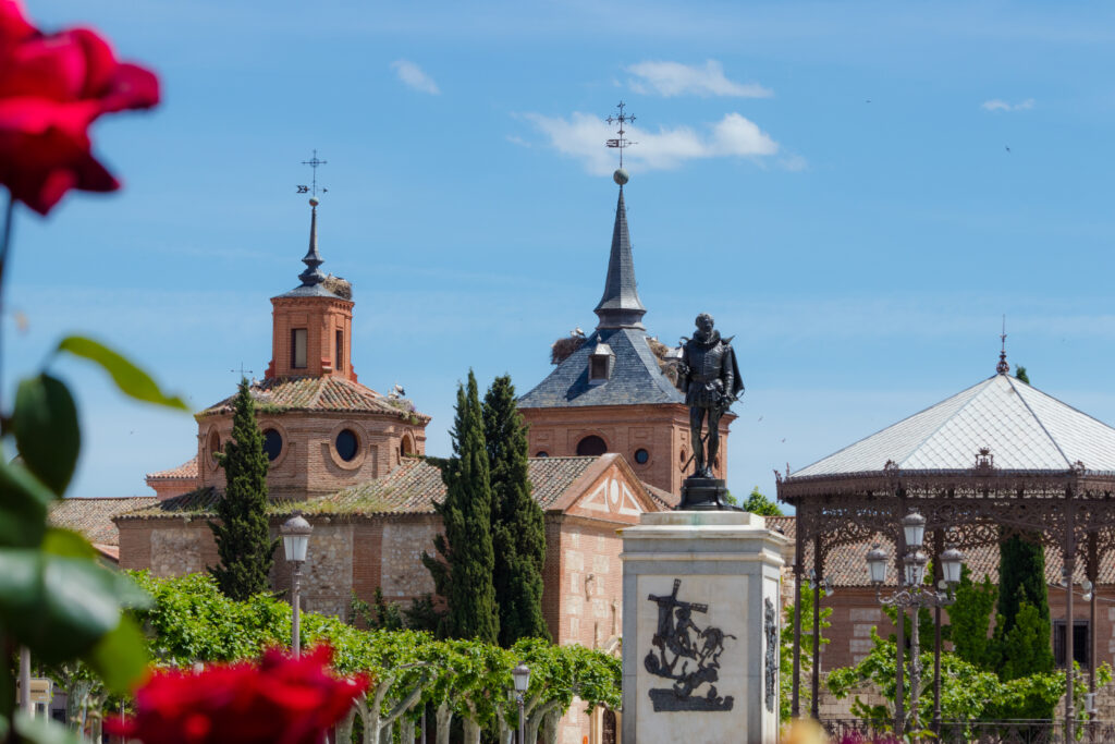 The historical building of Plaza de Cervantes in Alcala de Henares in the city of Complutense, Spain