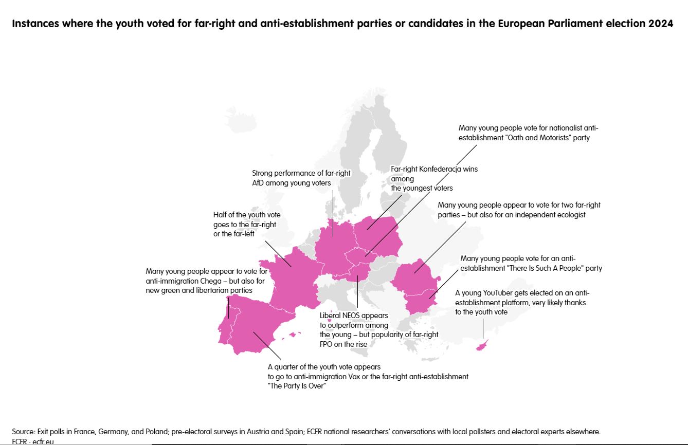 Pawel Zerka- Con este estudio mi intención era ver un poco más de cerca a estos europeos que no son activos de manera política. Lo que hemos visto es que los jóvenes, por ejemplo, suelen votar menos y lo que me preocupa es que no solo suelen votar menos, también se atreven mucho más con cada elección a votar por los partidos de extrema derecha, lo cual es una paradoja porque al mismo tiempo, si miramos las encuestas sobre los valores que la gente joven tiene, no ha habido cambios importantes. Los jóvenes europeos todavía siguen siendo los más progresistas y proeuropeos entre todas las generaciones. Sin embargo, con cada elección, se atreven cada vez más a votar a los partidos de extrema derecha.