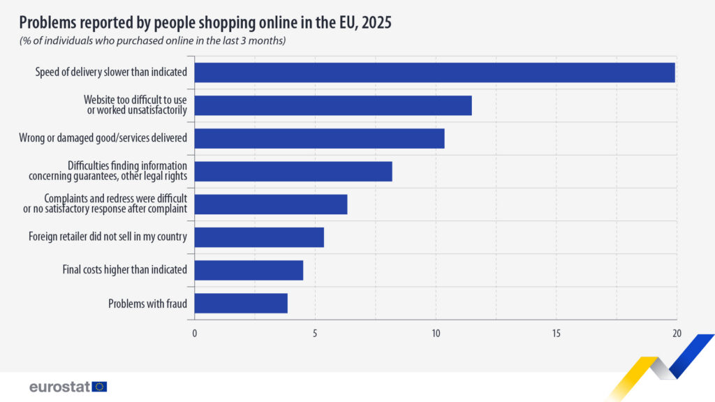 Más de un tercio (35,4 %) de los compradores en línea en la UE informaron haber encontrado problemas al realizar compras a través de un sitio web o una aplicación. Esto es según una encuesta de 2025 sobre el uso de tecnologías de la información y la comunicación.