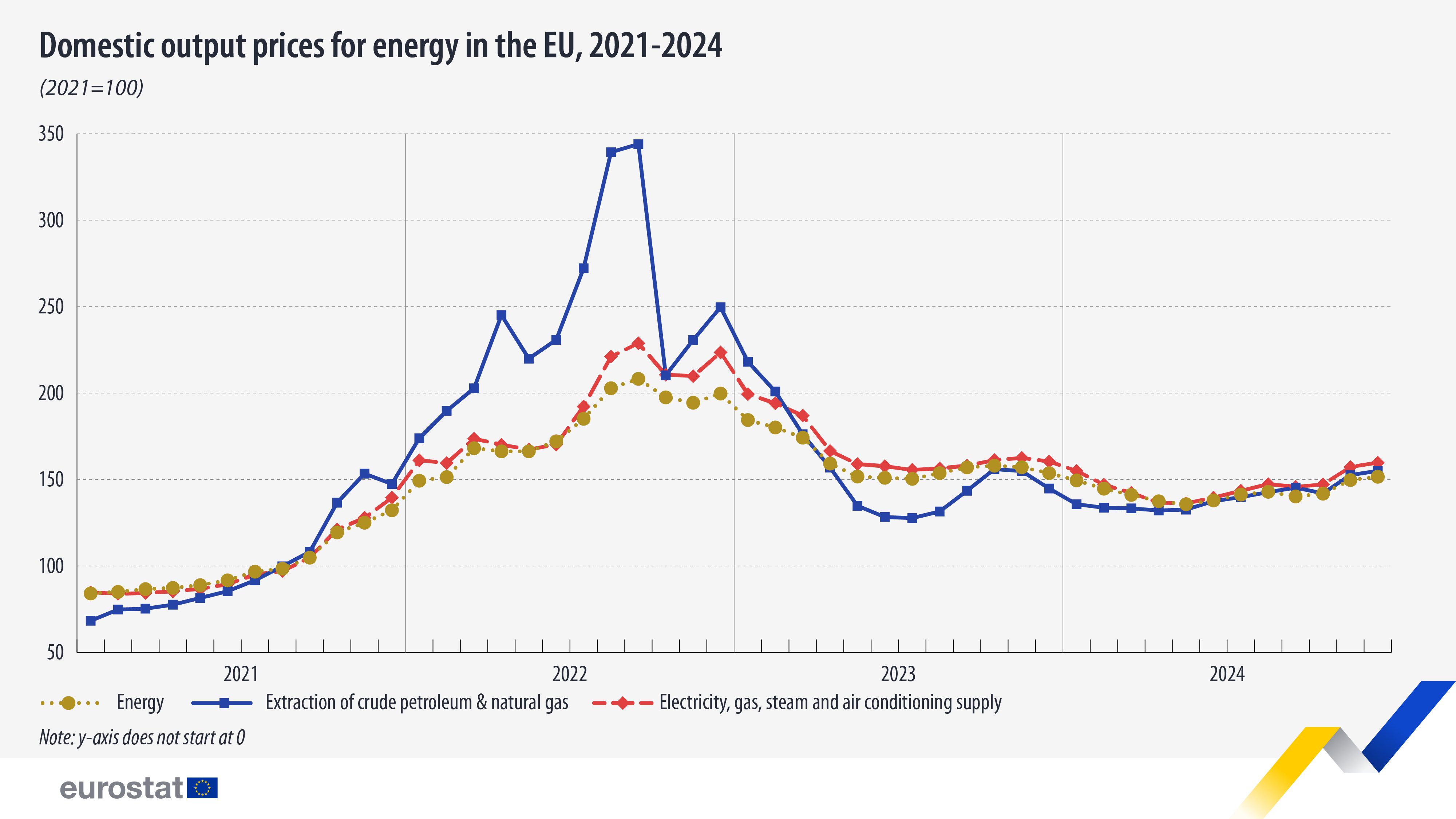 En diciembre de 2024, el precio de producción nacional de la energía en la UE aumentó un 1,3% en comparación con el mes anterior, mientras que disminuyó un 1,4% en comparación con diciembre de 2023. Sin embargo, entre enero de 2021 y diciembre de 2024, el precio subió un 80,3%, según informa Eurostat.