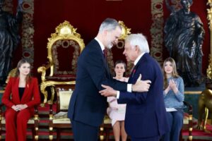 Los Reyes presidieron este viernes, 21 de noviembre, el acto de imposición de la Orden del Toisón de Oro a la Reina Doña Sofía, al expresidente del Gobierno Felipe González y a los dos “padres” vivos de la Constitución de 1978, Miguel Herrero y Rodríguez de Miñón y Miquel Roca i Junyent.