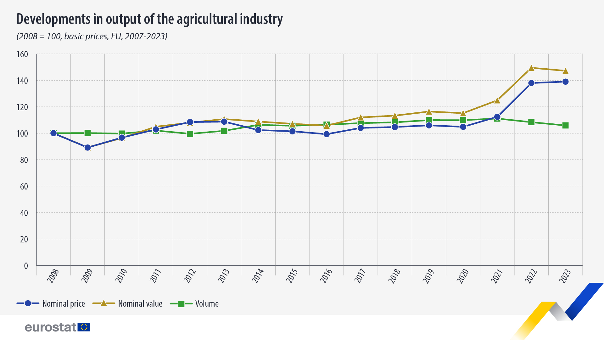 Esta información procede de las cuentas económicas de la agricultura (CEA) para 2023 publicadas hoy por Eurostat. Se pueden encontrar resultados más detallados en el artículo Statistics Explained sobre el desempeño del sector agrícola .