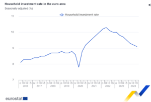 Al mismo tiempo, la tasa de inversión de los hogares en la zona del euro disminuyó del 9,2% al 9,1% en el tercer trimestre de 2024, ya que la formación bruta de capital fijo disminuyó un 0,2%, mientras que la renta disponible bruta aumentó un 0,7%.
