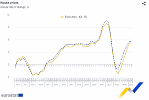 Si hablamos de la eurozona, en el primer trimestre de 2025, los precios de la vivienda aumentaron un 5,3 % y en el segundo un 5,1 % en comparación con el mismo trimestre del año anterior.