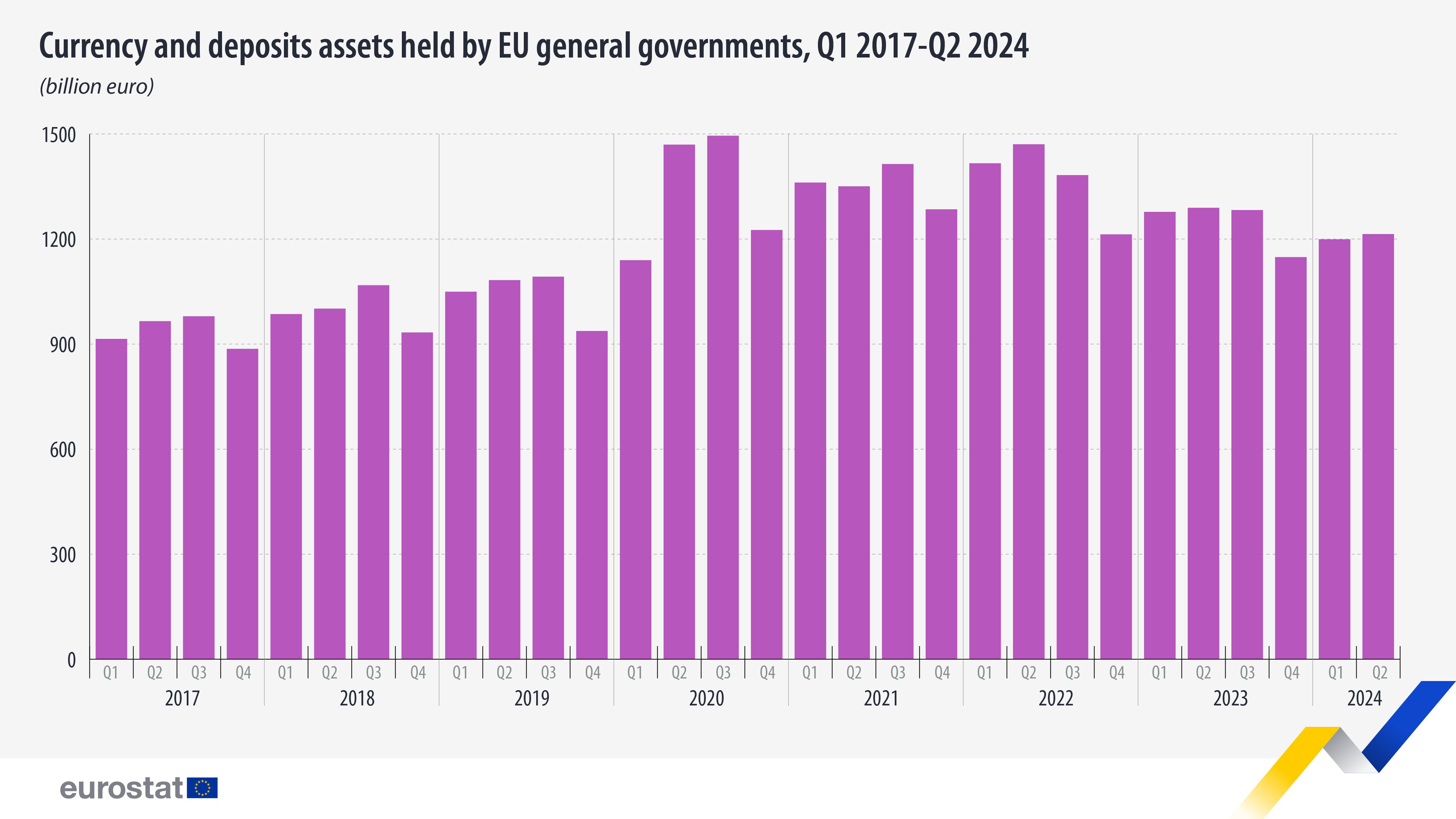 Eurostat afirma que durante la pandemia del COVID-19, los gobiernos de la UE aumentaron sus depósitos debido a una mayor emisión de deuda, que superó la financiación de los déficits. En el tercer trimestre de 2020, los depósitos representaron el 23% del total de activos financieros, su punto máximo en ese periodo.