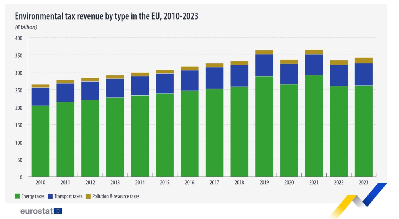 En 2023, los ingresos por impuestos medioambientales en la UE ascendieron a 341.500 millones de euros, frente a los 334.600 millones de euros de 2022, lo que supone un aumento del 2,1% (+6.900 millones de euros)