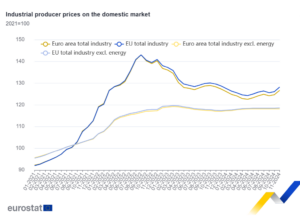 Los precios de producción industrial aumentaron un 1,6% en la zona del euro y un 1,7% en la UE, en noviembre de 2024, en comparación con octubre de 2024, según las primeras estimaciones de Eurostat, la oficina estadística de la Unión Europea .